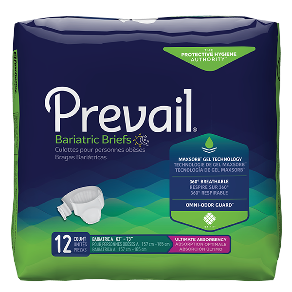 Prevail® Specialty Sizes Briefs provide heavy leakage protection for men and women of all sizes. These briefs are designed to fit the smallest to the largest wearers and provide a range of absorbencies, from maximum to ultimate, to best suit your needs. Cloth-like fabric and ventilated panels provide a breathable feel while Odor Guard® stops unwelcome smells before they start for  long-lasting freshness every single day.